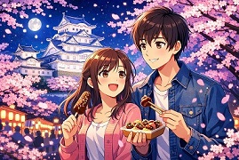 姫路城の夜桜と屋台は、関西でも人気の花見イベントです。